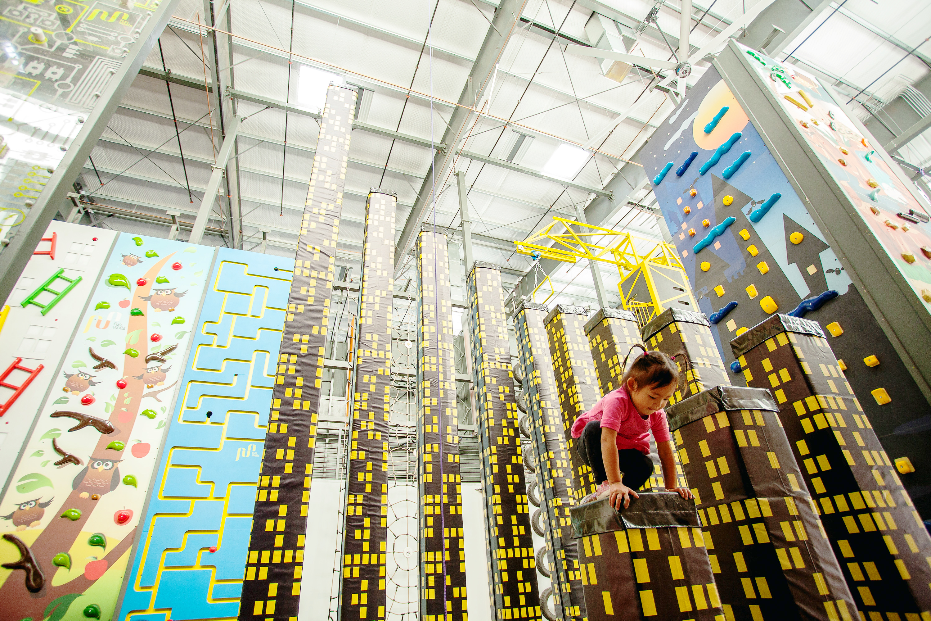 The fun walls were so creative. I loved how all the kids could climb at the same time and how easy it was to attach the belay to their harnesses so they can climb continuously.